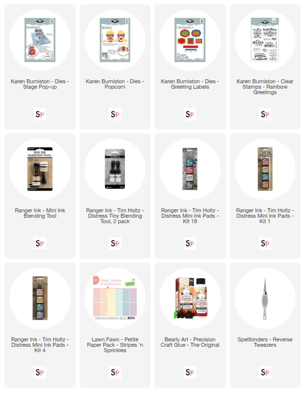 Hi everyone, and welcome back to the ScrapbookPal Blog! I'm Cassie Trask, back with another video tutorial to share with you. Today I'm working with the Karen Burniston Stage Pop-Up dies, and let me just say that they are genius! The idea that can stand alone as a card or be put inside of a 5" x 7" card is so much fun. Not only that, but you can add as many pop-ups as your heart desires. I paired the Stage Pop-Up with the Popcorn dies as well as the Greeting Labels dies and the Rainbow Greetings stamps.